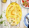 Gräddig fiskgratäng under krämigt potatislock är riktig mysmat. Servera gärna med en tomatsallad.