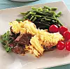Lägg det färdiga köttet i en ugnssäker form. Spritsa eller bred moset över. Gratinera ca 20 minuter mitt i ugnen.