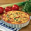 Vispa samman ägg, salt, peppar och mjölk. Häll det över tomaterna. Strö över riven ost.