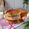 Ta upp degen på mjölat bakbord och dela degen i fem bitar. Rulla bitarna till bullar och kavla ut dem till rundlar som är 18 cm i diameter. Lägg dem på plåt med bakplåtspapper och nagga dem. Låt jäsa övertäckta, 30 minuter. Grädda mitt i ugnen i ca 10 minuter.