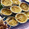 Vispa samman ägg och grädde i en skål. Salta och peppra. Skeda över fyllningen i formarna. Grädda mitt i ugnen i ca 12 minuter. Låt pajerna kallna på galler. Förvara svalt i en plastlåda.