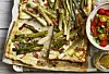 Sätt ugnen på 200 grader. Lägg ut färdigkavlad smördeg på papprad plåt och vik upp kanterna.