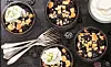 Sätt ugnen på 200 grader. Nyp ihop ingredienserna till smuldegen så att du får en smulig, grynig massa. Tryck ut hälften av smuldegen i 4 små portionsformar. Förgrädda i 5 minuter.