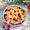 Strö över smuldegen och grädda i nedre ­delen av ugnen i ca 25 minuter. Servera ­pajen med vaniljsås ­eller glass.