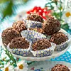 Smaksätt med arrak och rulla bollarna i chokladströssel.