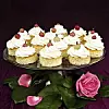 Ta ut små kakbitar med ett runt mått, cirka 5 centimeter i diameter. Vispa grädden till hårt skum, smaksätt med rom eller punsch. Spritsa grädde på kakbitarna så att de liknar små bakelser. Garnera med bär som du kanske hittar
