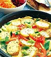 Du behöver Gör så här 1 Skala och skiva potatisarna. Ansa, skölj och strimla löken. Kärna ur och strimla paprikan. Fräs alltsammans i en stekpanna,...