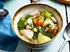 Servera soppan toppad med örtolja och finriven parmesan och bjud gott bröd till.
