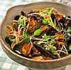 Skölj musslorna noga i kallt vatten. Kassera musslor som är trasiga