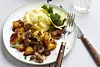 Servera kålroten med svampen, potatismos och en god sallad med vinägrett.