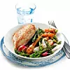 Lägg upp grönsakerna och kycklingen på tallrikar. Strö över persiljan. Peppra.