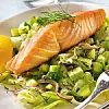 Stek laxen runt om i lite olja i 3–4 minuter, salta och peppra. Servera med grönsakerna och pressad potatis.