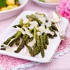 Du behöver Gör så här 1 Bryt av nedersta biten på sparrisen. Stek den i olja tillsammans med citronen delad i bitar tills sparrisen börjar...