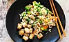 Genom att tofun steks hårt i sesamolja får den fin stekyta och god smak.