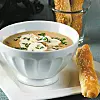 Ansa och skiva svampen fint. Strö svampen och hackad gräslök över soppan. Bjud grissini till.
