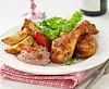 Lägg kycklingbenen i en stor plastpåse och häll kryddan över. Skaka påsen så kryddorna täcker benen. Lägg dem i en stor form och låt bli rumstempererade. Stek dem i 225° C i ca 30 min eller tills de är klara.Mixa samman ingredienserna till böndippan, smaka av med salt och peppar. Garnera med hackad röd pepparfrukt eller paprika. Serveras som huvudrätt eller del av buffé tillsammans med pastasallad.