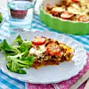 Häll i pajformen och lägg på delade tomater. Vispa ihop ägg, gräddfil och peppar, och häll i formen. Baka i 20 minuter. Servera med sallad.