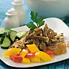 Strimla köttet i ca 1 cm tjocka strimlor.