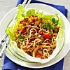 Du behöver Gör så här 1 Skala och skiva löken. Tärna paprikan. 2 Koka nudlarna enligt anvisning på förpackningen, skölj dem i kallt vatten. 3...