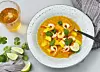 Smaka av med limesaft. Tillsätt räkorna precis innan servering och strö över färsk koriander.