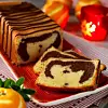 Klicka i lite av den ljusa smeten i en smord och bröad form som rymmer 1 1/2 l. Häll i den mörka smeten och avsluta med den ljusa.