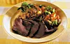 Lägg köttet i en trång bunke och häll på marinaden. Se till att den täcker köttet. Låt det stå i kylskåpet i ca 12-24 timmar. Skär sedan köttet i tunna skivor och servera det med lökpaj eller potatisgratäng.