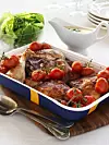 Stek kycklingen enligt anvisning på förpackningen. När det är ca 15 minuter kvar av stektiden så hälls vinet över och små klasar av tomater läggs emellan. Häll av skyn från Stinas kyckling och blanda med creme fraiche. Koka upp såsen smaka av med salt, peppar, gräslök och servera såsen till med en sallad. Servera med kokt potatis eller ris och sallad.