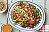 Här använder vi tomater både i den matiga salladen och i den friska dressingen.