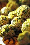 Blanda alla ingredienserna i en bunke och smaksätt med Hot pepper-sås och persikomarmelad. Forma runda, rätt stora bullar och rulla dem i persilje- och valnötshack.