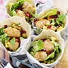 4 Servera den nyfriterade fisken i tortillabröd tillsammans med lite sallad, mangosalsa och guacamole. Toppa med några granatäpplekärnor.