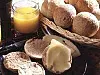 Nygräddade bullar till frukost: Allra först på morgonen tar du fram så många bullar du vill ha. Lägg dem på en papprad plåt så att de tinar. Värm samtidigt ugnen till 225 grader. Ställ sedan in bullarna på nedersta falsen i den heta ugnen och grädda dem ca 15 minuter. Vill du har mera färg på bullarna, ställ dem högre upp i ugnen de sista minuterna. Låt bullarna svalna under bakduk.