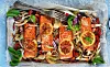 Ugnsbakad lax på grönsaksbädd