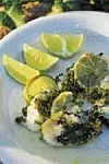 Vänd torskfiléerna i salt och låt dem ligga i en skål i kylskåpet 40-50 minuter, så de blir lättrimmade. Skölj av överflödigt salt och skär filéerna i ganska stora bitar. Sätt ugnen på 150 grader. Lägg limeskivor i en ugnsfast form. Hacka persiljan fint och strö över och stänk på lite tabasco. Varva sedan torskbitarna i formen med tunna skivor lime och hackad persilja. Blanda saften av lime med några stänk tabasco och häll över torsken. Droppa över olivolja och ugnsbaka mitt i ugnen 10-12 minuter.
