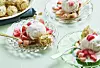 Du behöver Mandelkakor 200 g mandelmassa 1 st äggvita 50 g mandelspån Vaniljkokt rabarber 6 st späda rabarberstjälkar 2 dl vatten 1 dl torrt vitt...