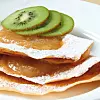 Grädda pannkakor eller plättar av smeten i stekpanna eller plättlagg, på medelvarm platta. Servera med äppelmos, kiwi och florsocker.