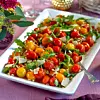 Häll olivoljan i stekpannan och tillsätt tomater, flytande honung, balsamvinäger, salt och peppar. Värm upp under omrörning i 2–3 minuter.