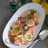 Ansa och skiva rädisorna tunt. Skala och skiva löken tunt. Skär citronen i tunna skivor.