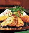 Dekorera med sallad, citron och färsk dill.