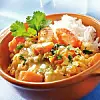 Du behöver Gör så här 1 Fräs rotfrukter, lök, vitlök, och chili i oljan. 2 Tillsätt curry, mango chutney, buljong och 6–7 deciliter vatten. Rör...