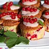 Vänd ner vinbären. Klicka ut den ganska fasta smeten i muffinsformar. Fyll dem till 3/4. Grädda mitt i ugnen, ca 15 minuter. Låt muffinsen svalna på bakgaller.