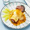 Servering Värm ugnen (ej varmluft) till 225 grader. Förbered varsin assiett med fruktfiléer och kyld passionssås under gräddningstiden.