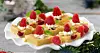 Spritsa på vispad grädde och lägg på hallon, vit choklad och citronmeliss.