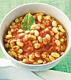 Fräs lök och vitlök i olivoljan. Tillsätt krossade tomater, strösocker, timjan, lagerblad och vatten. Koka tomatsåsen sakta i tio minuter. Lägg i bönorna och ge det hela ett uppkok. Låt svalna och lägg i burkar eller byttor med tättslutande lock. Frys in eller ställ in i kylen. Där håller de i minst tio dagar.