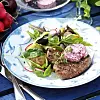 Torka av köttet och grilla det över glöd, ca 3 minuter per sida. Servera med sallad.