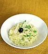 Koka risotton på svag värme under omrörning. När vattnet kokat in tillsätts resten av vätskan, lite i taget tills riset kokat klart (cirka 17 minuter).