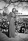 Redan i unga år samlade Alice Babs stora ­skaror varhelst hon drog fram. Här fram­träder hon på Skansen i ­samband med Djurgårds­mässan 1941.