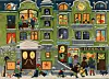 Papperskalendern för ”Den tänkande brevbäraren” från 1963, som var dubbelsidig för tv respektive radio, tecknades av Ilon Wikland, som också illustrerat Astrid Lindgrens och Edith Unnerstads böcker. Ilon, som föddes i Estland men kom till Sverige som krigsflykting som fjortonåring, har en lekfull stil med klara färger, här i bilden av den gröna husfasaden med tända inbjudande skyltfönster och med barn på gatan och på balkongerna. ”Behållningen tillfaller Radiohjälpen för handikappade barn” står att läsa högst upp på kalendern.