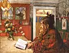 Karin sitter och läser, Carl målar av. Foto: Carl Larsson-gården