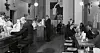 ”Mjölk är både mat och dryck”, står det på den tidstypiska affischen i bakgrunden. Att det är ett enklare matställe märks bland annat på att alla gäster behållit ytterkläderna på. Foto: Wikimedia