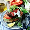 Högrevsburgare med grillade grönsaker
